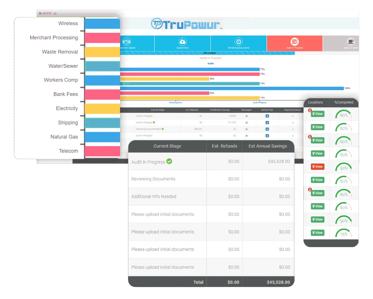 Whether you’re managing a single manufacturing site or a nationwide retailer with thousands of locations, Views360 simplifies your cost containment projects. With multi-audit visibility, real-time communication, and dynamic savings reports, everything you need is just a click away!